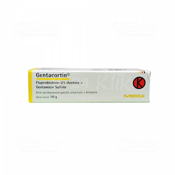 Deskripsi:Gentacortin merupakan obat dalam bentuk salep atau krim yang digunakan untuk meringankan inflamasi dermatosis yang responsif terhadap kortikosteroid bila terkomplikasi infeksi sekunder (alergi, dermatitis atopik, dermatitis kontak, dan psoriasis plak). Gentacortin mengandung kombinasi zat aktif: