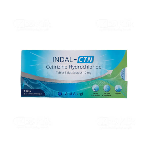 Deskripsi:INDAL-CTN 10MG merupakan golongan obat antialergi (antihistamin) yang kecil kemungkinan menyebabkan rasa kantuk. Obat ini digunakan untuk mengobati gejala alergi seperti rasa gatal pada mata, tenggorokan, hidung tersumbat, pilek, bersin-bersin serta ruam pada kulit.