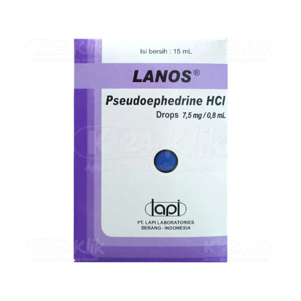 Deskripsi:LANOS 7.5MG/0.8ML DROP 15ML merupakan obat yang digunakan untuk meringankan gejala hidung tersumbat akibat pilek. Obat ini memiliki kandungan Pseudoephedrine HCl, yang bekerja dengan cara mengurangi pembengkakan pembuluh darah di rongga hidung, sehingga lebih lega untuk bernapas.
