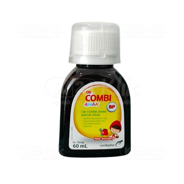 OB Combi Anak BP Strawberry Syrup adalah obat batuk dan pilek yang diformulasikan khusus untuk membantu meredakan berbagai gejala flu pada anak. Obat sirup ini bisa untuk mengatasi batuk, pilek, hidung tersumbat dan juga bersin. Komposisi OB Combi Anak BP Strawberry Syrup adalah Dextromethorphan HBr, Pseudoephedrine HCl dan juga CTM.