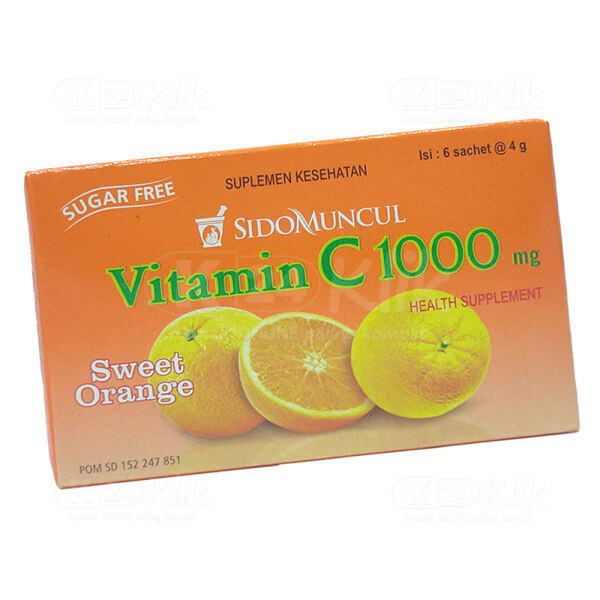 Referensi:Deskripsi Sidomuncul Vit C 1000mg Orange Sach 1 Dos Isi 6 Sachet diambil dari