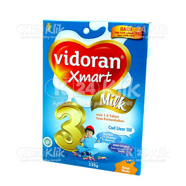 Deskripsi:Vidoran Xmart 3 Susu Pertumbuhan merupakan susu formula bubuk untuk pertumbuhan si kecil yang pertama yang berfungsi untuk mendukung tumbuh kembangnya. Dengan kandungan bermanfaat minyak hati ikan kod, susu pertumbuhan ini dapat mengoptimalkan fungsi otak anak yang sangat diperlukan dalam usianya. Diperuntukkan bagi anak berusia 1 hingga 3 tahun susu ini dilengkapi pula dengan berbagai macam nutrisi yang diformulasikan sesuai dengan kebutuhan si kecil. Rasa yang lezat dapat disukai oleh anak Anda, tersedia rasa vanila dan madu. |