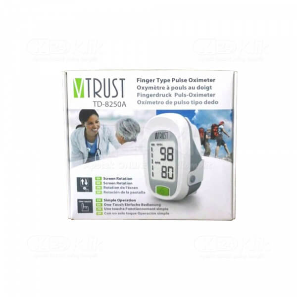Deskripsi:VTRUST PULSE OXIMETER TD-8250A merupakan salah satu alat medis yang digunakan untuk mengukur Saturasi Hemoglobin manusia dan jantung melalui jari. |