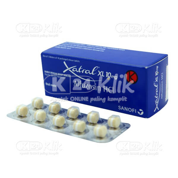 Deskripsi:Xatral XL diproduksi oleh PT. Sanofi Aventis dan telah terdaftar pada BPOM. Pada setiap tablet Xatral XL mengandung 10mg alfuzosin HCl. Xatral XL digunakan untuk mengobati gejala fungsional dari hipertrofi prostat jinak (kelenjar prostat yang membesar sehingga menekan saluran keluar kandung kemih sehingga susah buang air kecil). Xatral XL juga dapat digunakan untuk terapi tambahan pada retensi urin akut yang berhubungan dengan hipertrofi prostat jinak. Xatral XL bekerja dengan memblok adrenoseptor pada prostat, leher kandung kemih dan uretra prostat. |