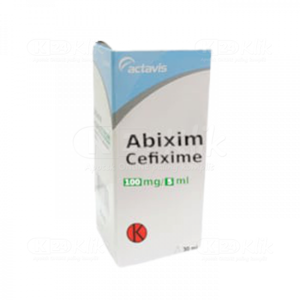 Deskripsi:Abixim sirup kering mengandung 100mg cefixim pada setiap 5ml, sebelum Abixim disajikan maka perlu ditambahkan air hingga batas yang tertera pada botol dan kocok dahulu. Abixim sirup kering diproduksi oleh PT. Actavis dan telah terdaftar pada BPOM. Abixim sirup kering efektif digunakan untuk mengatasi infeksi yang disebabkan oleh berbagai jenis bakteri seperti infeksi saluran kemih, otitis media dan gonore servikal dan urektal. |