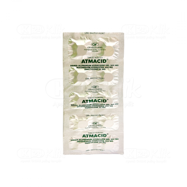 Deskripsi:Atmacid yang diproduksi oleh Graha Farma, merupakan tablet kunyah yang mengandung alumunium hidroksida, magnesium hidroksida, dan dimethicone. Kombinasi dari bahan aktif tersebut, secara sinergis dapat bekerja dengan cepat dalam menurunkan asam lambung yang naik. Oleh karena itu, Atmacid dapat digunakan untuk meringankan gejala mual, nyeri lambung, dan nyeri ulu hati. Walapun termasuk obat bebas, dosis dan efek samping antasida doen tetap harus diperhatikan oleh pasien agar penggunaannya aman. |