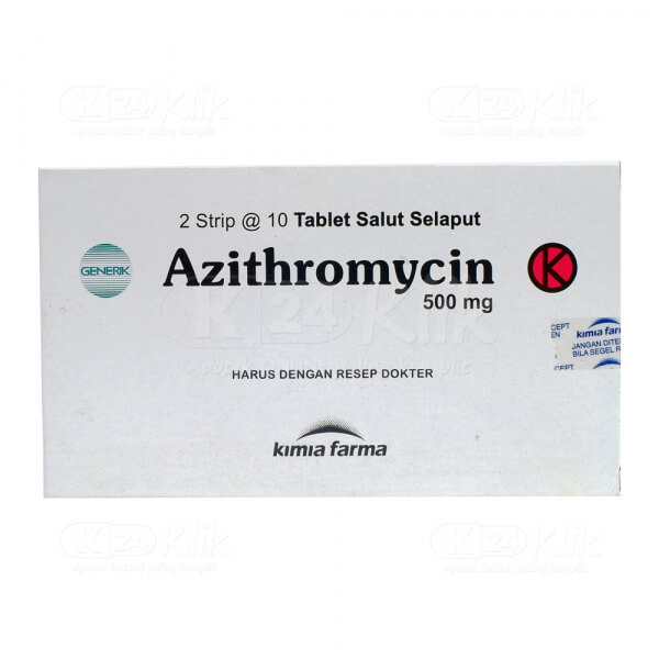 Deskripsi:Azithromicin merupakan antibiotika generik produksi Kimia Farma yang digunakan untuk mengobati infeksi pada saluran pernapasan bagian atas dan bawah, infeksi kulit dan jaringan lunak serta genital.