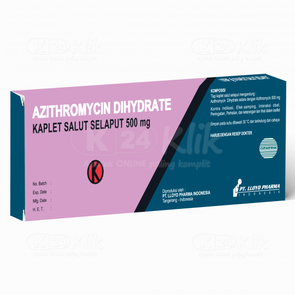 Referensi:Deskripsi Azithromycin Kmkes Lloyd 500mg Fc Kaplet diambil dari
