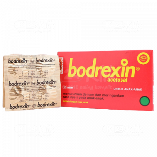 Deskripsi:BODREXIN 80MG TAB 18'S dapat menurunkan demam dan meringankan rasa nyeri pada anak-anak dengan rasa buah yang enak. Beli BODREXIN 80MG TAB 18'S di apotek online K24Klik.com dan dapatkan manfaatnya. |