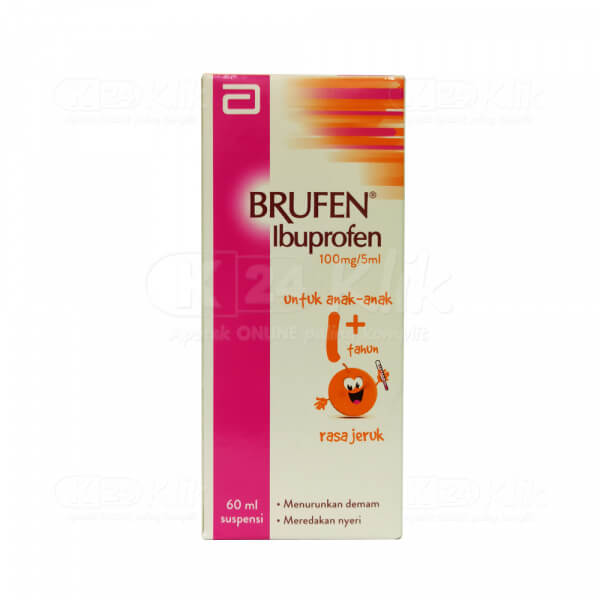 BRUFEN SUSP 60ML dapat membantu mengurangi nyeri dan radang artritis (rheumatoid arthritis, radang sendi muda, osteoarthritis) dan gangguan non-sendi (otot rangka), nyeri ringan sampai parah termasuk dismenorea, pasca operasi, penyakit gigi atau nyeri pada ekstraksi gigi. dan termasuk kedalam golongan obat anti-inflamasi non steroid yang memiliki efek sebagai analgesik (pereda nyeri) dan antipiretik (menurunkan demam). Obat ini mengadung zat aktif Ibuprofen. Tersedia dalam sediaan suspensi syrup yang didistribusikan oleh Abbott.