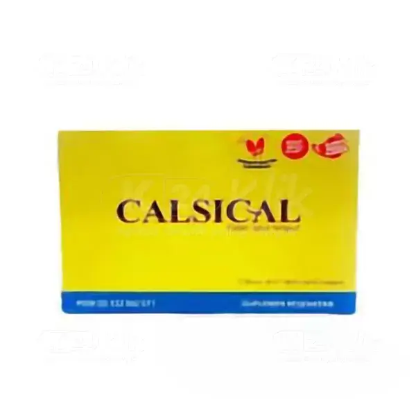 Deskripsi:Calsical diproduksi oleh PT. Teguhsindu Lestaritama dan telah terdaftar pada BPOM. Pada setiap tablet Calsical mengandung Ca citrate 500mg dan cholecalciferol 100 IU. Calsical merupakan suplemen kalsium dan vitamin D yang digunakan pada masa kehamilan, menyusui, mencegah osteoporosis pada wanita yang telah mengalami menopause. |