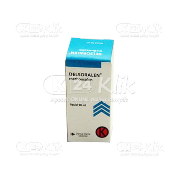 Deskripsi:Delsoralen dapat digunakan untuk mengatasi vitiligo/balak (kulit berbecak putih karena kehilangan pigmen), psoriasis (penyakit kulit menahun dengan kelainan berupa kemerahan, disertai pembentukan sisik-sisik berwarna perak yang tertumpuk berlapis-lapis, mungkin di seluruh tubuh, tetapi terbanyak di lengan dan tungkai, tidak menular dan belum jelas sebabnya). |