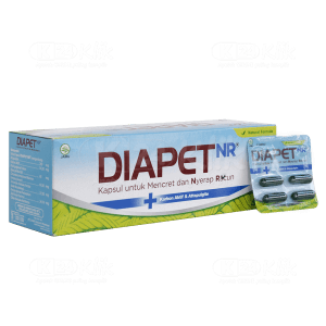 Deskripsi:DIAPET NR CAP 4S merupakan obat anti diare.Produk ini dapat digunakan untuk mengobati mencret dan memadatkan kembali feces yang cair serta mengatasi rasa mulas. Sebaiknya hindari makanan atau minuman yang asam dan pedas selama belum sembuh. |