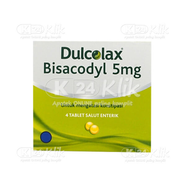 Deskripsi:Dulcolax merupakan obat pencahar yang menginduksi gerakan usus dan melunakkan feses sehingga membantu melancarkan proses Buang Air Besar (BAB) serta mengosongkan usus dari kotoran sebelum dilakukan kolonoskopi atau operasi. Dulcolax mengandung zat aktif Bisakodil yaitu obat turunan metana jenis stimulan yang bekerja dengan merangsang saraf enterik sehingga mengakibatkan kontraksi pada usus besar pada saat mengeluarkan feses sekaligus membersihkan atau mengosongkan isi di dalam usus besar |