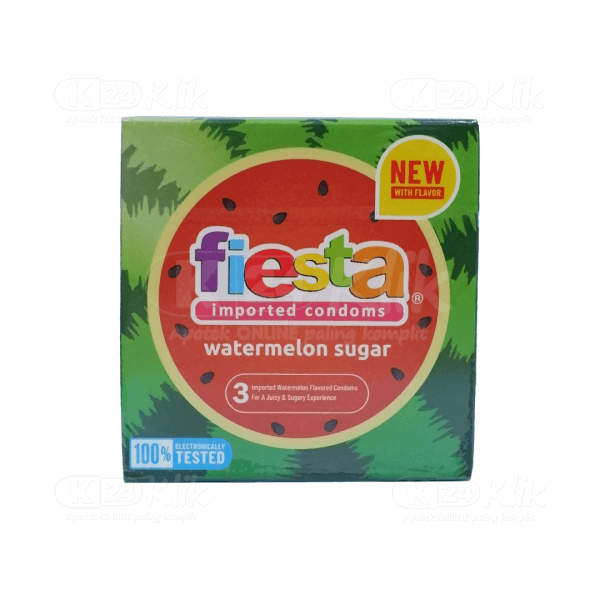 Deskripsi:FIESTA WATERMELON SUGAR 3S merupakan salah satu varian terbaru dari Fiesta Kondom yang berfungsi sebagai alat kontrasepsi pria dengan aroma dan rasa manis watermelon sugar sehingga meningkatkan mood dan intensitas.