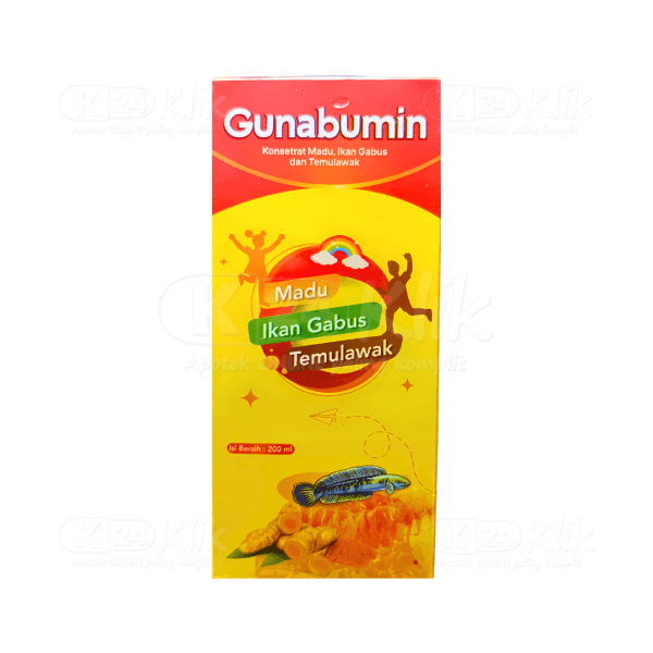 Deskripsi:GUNABUMIN 200ML merupakan suplemen makanan untuk anak yang memiliki kandungan bahan madu, ekstrak ikan gabus dan ekstrak temulawak. Gunabumin memiliki manfaat: