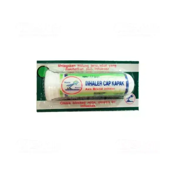 Deskripsi:KAPAK INHALER 1.7G memiliki kandungan bahan aktif menthol dan camphor yang dapat membantu melegakan hidung tersumbat karena pilek. Bentuk sediaan Kapak Inhaler sangat mudah dibawa kemana mana dan mudah digunakan.