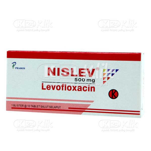 Deskripsi:Nislev merupakan obat antibiotika yang digunakan untuk mengobati infeksi akibat bakteri pada saluran kemih, saluran pernapasan, kulit dan jaringan lunak. Nislev mengandung zat aktif Levofloksasin yaitu antibiotik golongan florokuinolon yang bekerja dengan menghambat DNA pada bakteri sehingga tidak terjadi proses replikasi dan trankripsi DNA dan sel bakteri tidak terbentuk. Levofloksasin dapat didistribusikan dengan konsentrasi tinggi di dalam tubuh supaya dapat berpenetrasi ke dalam sasaran jaringan dengan baik. |