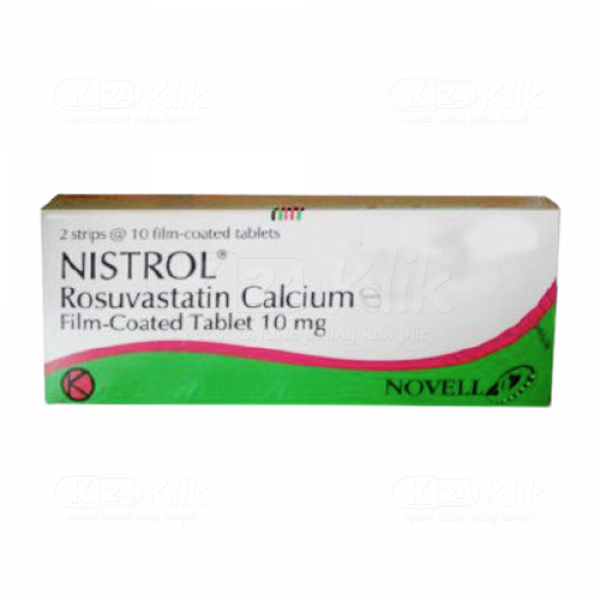 Deskripsi:NISTROL FC 20MG TAB mengandung Rosuvastatin 10 mg per tablet. Rosuvastatin digunakan untuk mengontrol kolesterol dan trigliserida sehingga dapat mengurangi risiko penyakit kardiovaskular (jantung dan pembuluh darah). Adanya sumbatan pada pembuluh darah dapat menyebabkan gangguan pada fungsi jantung dan stroke. NISTROL dapat mencegah penyumbatan pembuluh darah akibat lemak sehingga dapat mengurangi risiko terkena penyakit jantung dan stroke. |