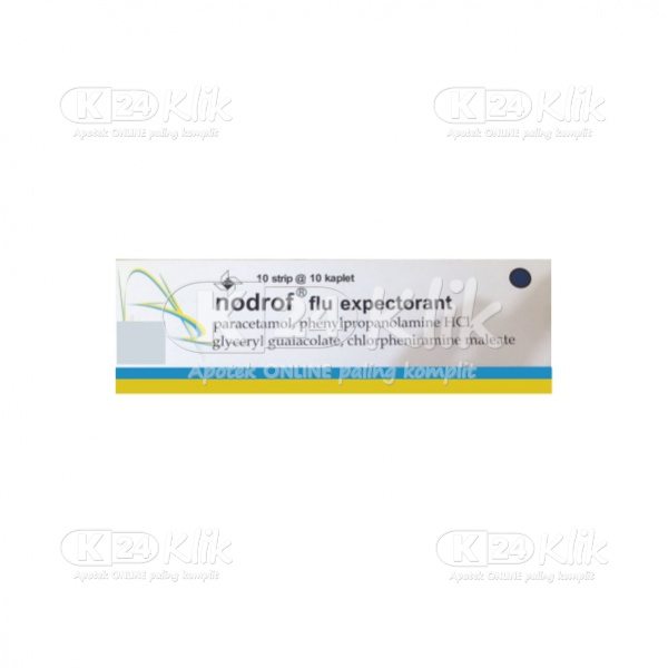 Deskripsi:NODROF FLU EXPECTORAN TAB 100S merupakan obat batuk berdahak dan pilek yang disertai demam dan sakit kepala. Produk ini mengandung zat aktif: