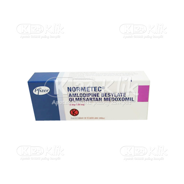 Indikasi / Manfaat / Kegunaan:Hipertensi esensial pada pasien yang tidak dapat dikendalikan dengan monoterapi olmesartan medoxomil atau amlodipin. Terapi sulih: Pasien yang sedang menggunakan olmesartan medoxomil dari tablet terpisah dapat menggantinya dengan Normetec yang mengandung komponen sama. Tidak boleh digunakan sebagai terapi awal. |