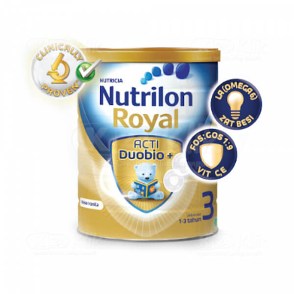 Dosis:Berikan Nutrilon Royal 3, tiga kali sehari (?700mL). Nutrilon Royal 3 membantu kecukupan asupan nutrisi penting, apabila diberikan dengan takaran yang tepat. |