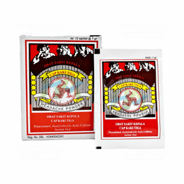 Referensi:Deskripsi Obat Sakit Kepala Cap Kaki Tiga Sach diambil dari