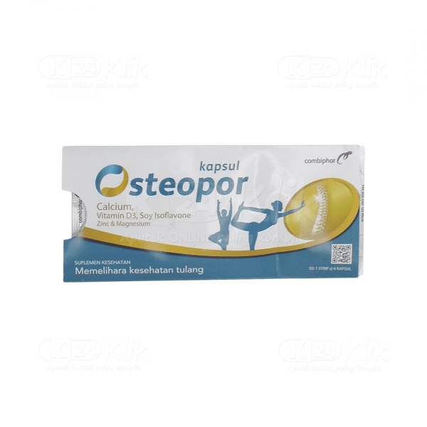 Deskripsi:Osteopor merupakan suplemen tulang yang digunakan untuk menjaga kesehatan tulang dan mencegah penyakit osteoporosis terutama pada wanita pra dan paska menopause. Osteopor mengandung kombinasi zat aktif dengan mekanisme kerja sebagai berikut :