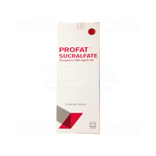 Deskripsi:Profat diproduksi oleh PT Promed dalam bentuk sirup dan telah terdaftar di BPOM. Profat digunakan untuk terapi jangka pendek (tdk boleh >8 minggu) pada tukak duodenum. Profat sebaiknya dikonsumsi 1 jam sblm makan & menjelang tidur |