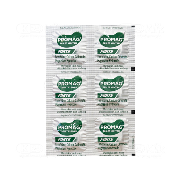 Referensi:Deskripsi Promag Forte 1 Amplop Isi 6 Tablet Kunyah diambil dari
