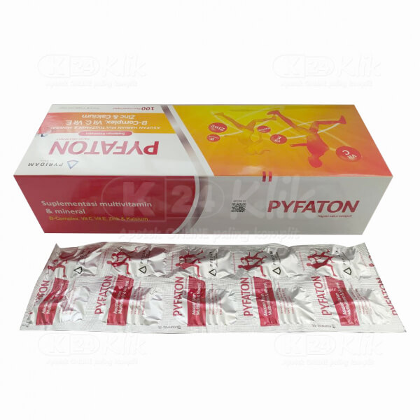 Indikasi / Manfaat / Kegunaan:Pyfaton adalah suplemen kaplet salut selaput untuk defisiensi vitamin B complex, vitamin C, dan juga dilengkapi dengan zinc. |