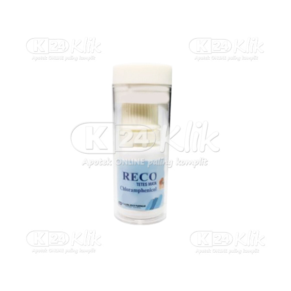 Deskripsi:Reco Eye Drop 0,5% merupakan obat tetes yang mengandung antibiotik kloramfenikol untuk mengatasi infeksi akibat bakteri pada daerah mata.