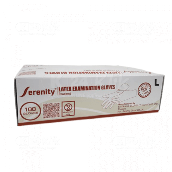 Nama Standar MIMS:SERENITY GLOVES LATEX PWD L 100S |