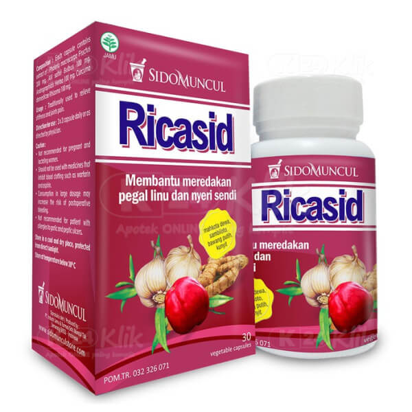 Referensi:Deskripsi Sidomuncul Ricasid Kapsul 1 Botol Isi 30 Kapsul diambil dari berbagai macam sumber |