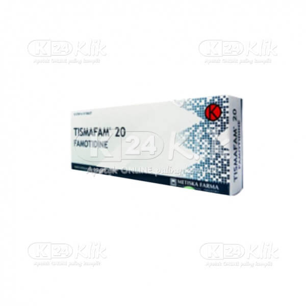 Deskripsi:Tismafam mengandung zat aktif Famotidine yang termasuk dalam golongan histamine H2-receptor antagonist dan digunakan untuk mengatasi penyakit-penyakit yang disebabkan oleh kelebihan produksi asam lambung, seperti sakit maag dan tukak lambung.Mekanisme kerja dari Famotidine yaitu: • Menghambat secara kompetitif kerja reseptor histamin H2, yaitu reseptor yang berperan dalam sekresi asam lambung. Produksi asam lambung akan menurun akibat dari penghambatan kerja reseptor H2 pada saat kondisi istirahat maupun adanya rangsangan oleh makanan, histamine, kafein, dan insulin. |