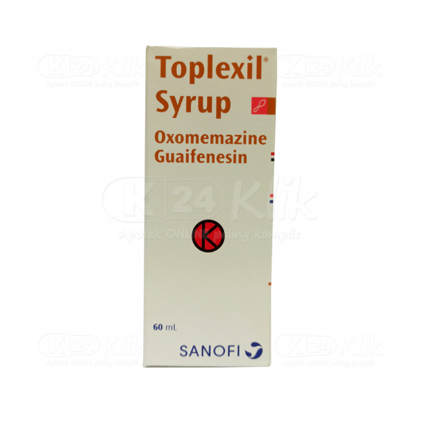 Deskripsi:Toplexil diproduksi oleh PT Aventis Indonesia Pharma. Toplexil mengandung oxomemazine dan guaifenesin. Oxomemazine digunakan untuk mengobati batuk. Guaifenesin merupakan ekspektoran yang membantu melonggarkan rasa sesak di dada dan tenggorokan akibat pilek, infeksi, atau alergi, sehingga batuk akan mudah untuk keluar. Ketika mengkonsumsi Toplexil sebaiknya mengkonsumsi cairan yang lebih banyak juga untuk membantu melonggarkan dan melumasi tenggorokan . |