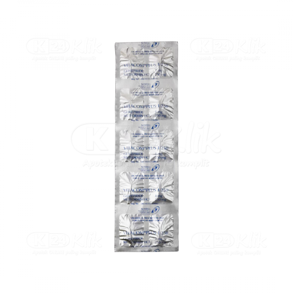 Deskripsi:VELACOM PLUS 1/250 FC CAPTAB 30S mengandung Glimepiride 2 mg dan Metformin 500 mg. Obat ini digunakan untuk mengendalikan kadar gula darah tinggi pada penderita diabetes tipe 2. Glimepiride mendorong pankreas untuk memproduksi insulin dalam tubuh dan membantu tubuh menggunakan insulin secara lebih efisien. Metformin bekerja dengan mengurangi produksi glukosa hepar, mengurangi penyeapan glukosa intestinal, dan meningkatkan sensitivitas insulin. Obat ini sebaiknya digunakan untuk meningkatkan efek diet dan aktivitas fisik yang cukup, bukan menggantikannya. |