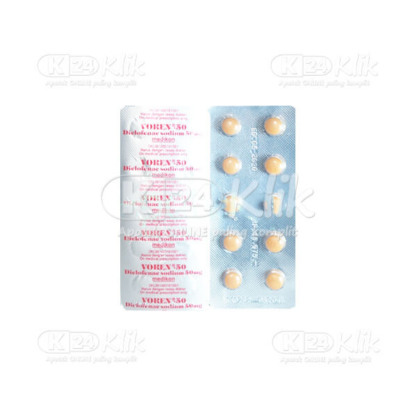 Tablet Voren diproduksi oleh PT Medikon Prima dan mengandung Natrium Diklofenak untuk mengatasi nyeri ringan, atau tanda-tanda dan gejala osteoarthritis dan rheumatoid arthritis yang diberikan secara oral/diminum setelah makan. Voren (diklofenak) termasuk golongan NSAID yang bekerja dengan mengurangi zat dalam tubuh yang menyebabkan rasa sakit dan inflamasi.  Hati-hati Voren dapat meningkatkan risiko kejadian trombotik kardiovaskuler serius, infark miokard, dan stroke apabila digunakan dalam jangka yang panjang