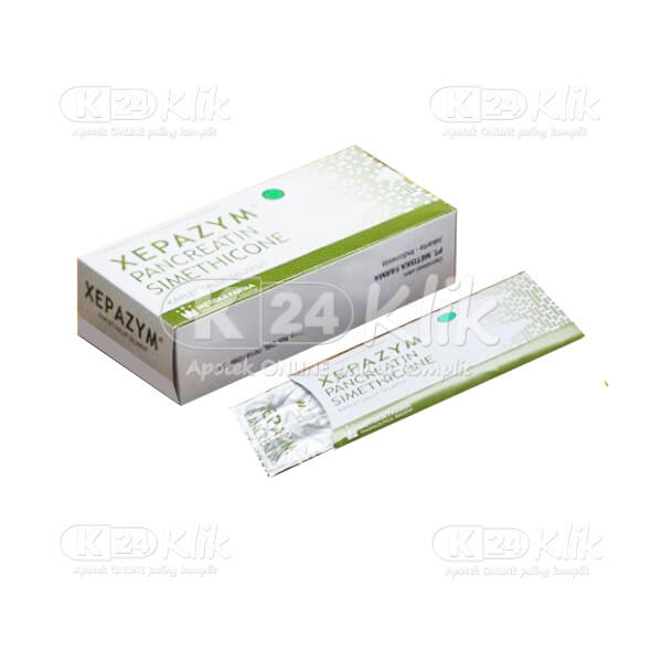 Deskripsi:Xepazym diproduksi oleh Mestika Farma sebagai obat yang digunakan untuk mengatasi masalah pencernaan, insufisiensi pankreas, kembung, dll. |