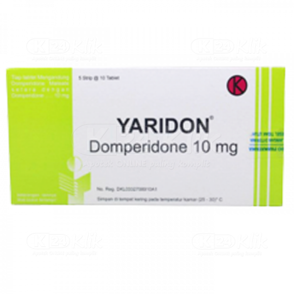 Deskripsi:PT Yarindo memproduksi tablet Yaridon dan telah terdaftar di BPOM. Tiap dosnya terdiri dari 5 strip yang masing-masing terdapat 10 tablet Yaridon. Domperidone yang terdapat dalam tablet Yaridon dapat mengobati mual & muntah karena penggunaan levodopa, bromokriptin, dan terapi simtomatik dispepsia fungsional pada dewasa, serta mengobati mual & muntah akibat kemoterapi pada anak. |