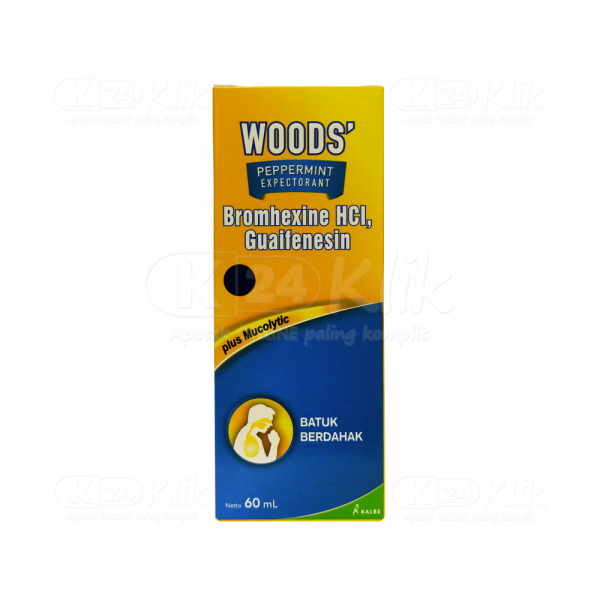 Deskripsi:Woods Expectoran merupakan obat yang digunakan untuk mengurangi dan mengencerkan dahak pada saluran pernapasan. Woods Expectoran mengandung dual zat aktif Bromhexin HCl dan Guaifenesin yang bekerja sebagai iritan pada saluran pernafasan di mana saat batuk, volume mukus ditingkatkan pada saluran napas serta menurunkan viskositasnya (menjadi lebih encer) sehingga dahak/lendir lebih mudah dikeluarkan dari saluran pernapasan. Fungsi kedua zat tersebut adalah ekspektoran yang dapat mengencerkan dahak atau lendir pada saluran pernafasan sehingga lebih mudah dikeluarkan bersamaan dengan batuk. |